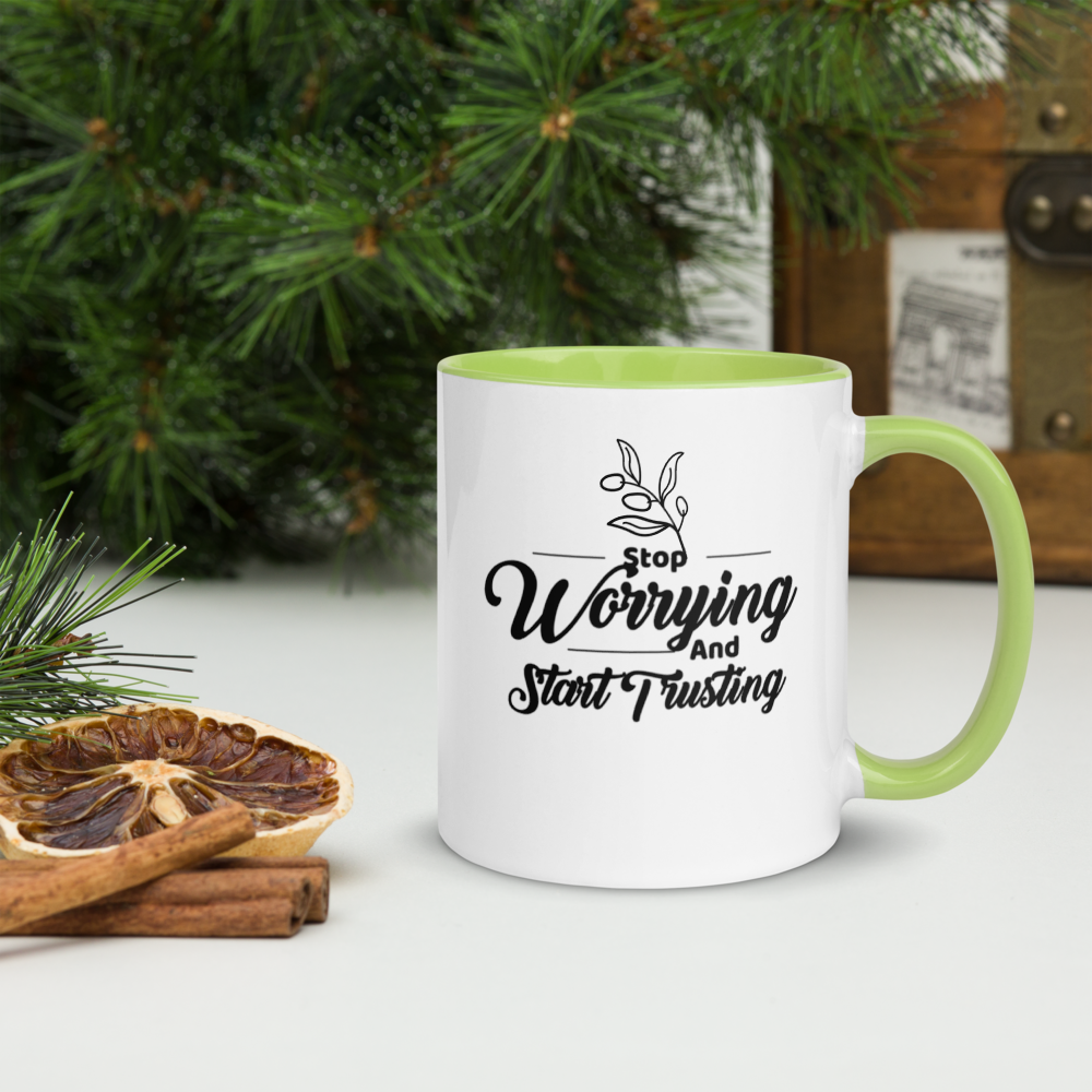 Start your mornings with a gentle reminder: “Stop worrying and start trusting.” This inspirational mug is more than just a cup for your coffee or tea—it’s an invitation to pause, breathe, and place your trust where it belongs. The olive branch design adds a beautiful symbol of peace and hope, reminding you that no matter what the day holds, you can choose trust over fear. Perfect for daily encouragement or as a thoughtful gift for someone who needs a little extra peace in their day.